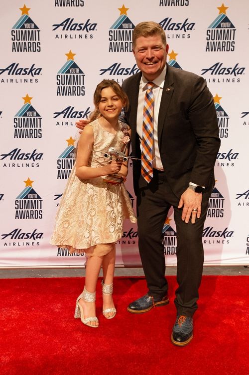 Kaylee excels academically, takes pride in learning new things, and is conscientious about her family, friends and community. At 10 years old, Kaylee started “Buckets of Love,” a nonprofit aimed towards helping the homeless. On top of running a nonprofit, she has also started her own business, Northern Glacier Coffee Co., a mobile coffee truck. She hopes to use her truck as a way to connect to the community and to send herself to college in the near future. She shows up to give her support and offers help where she can. Kaylee cares deeply about our community and what the future holds for it.